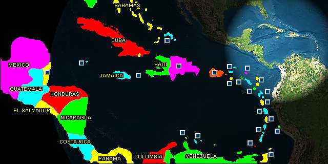 Panma Anguilla Antigua og Barbados Aruba Bahamas Barbados Belize Cayman Islands Costa Rica Cuba Dominica Dominikanske Republik El Salvador Grenada Guadeloupe Guatemala Haiti Hollandske Antiller Honduras Jamaica Jomfruøerne - England Jomfruøerne - USA Martinique Montserrat Navasso Island Nicaragua Panama Puerto Rico Saint Christopher (Kitts) and Nevis Saint Lucia Saint Vincent og Grenadinerne Trinidad & Tobago Colombia Venezuela Mexico USA Turks & Caicos Islands