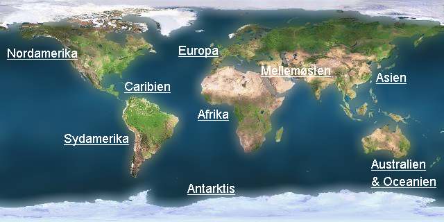 Antarktis Australien Asien Mellemøsten Afrika Europa Sydamerika Mellemamerika Nordamerika